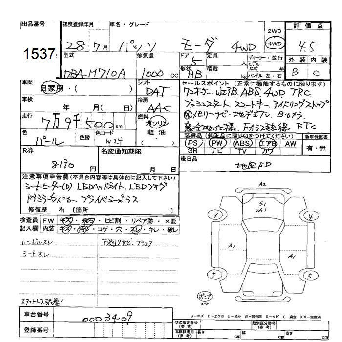 TOYOTA PASSO 4WDMO-DA - лот 1537