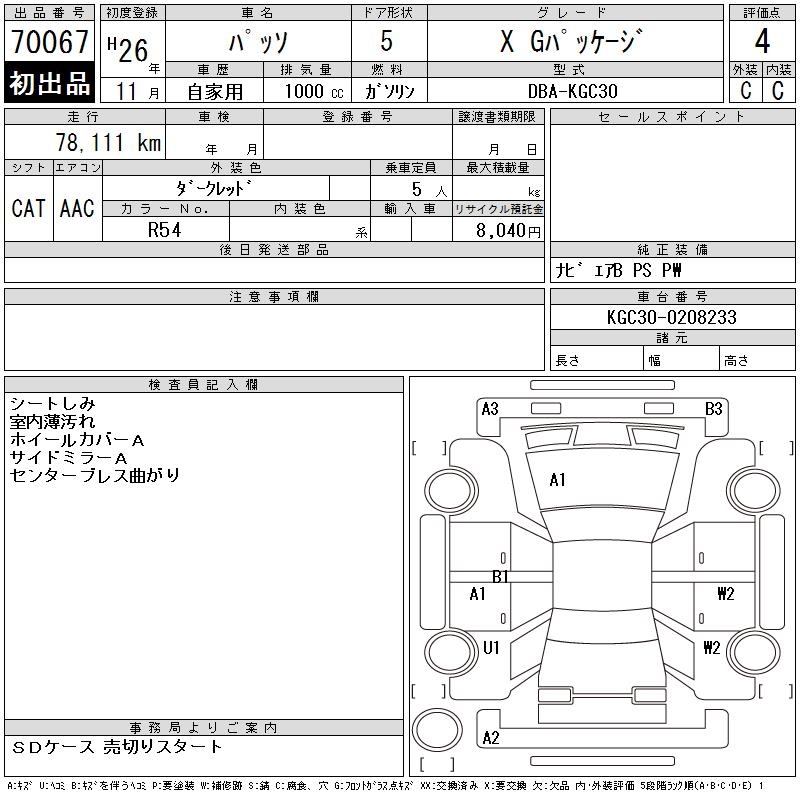 TOYOTA PASSO X G PACKAGE - лот 70067