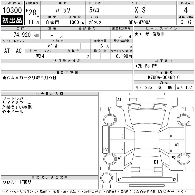 TOYOTA PASSO X S - лот 10300