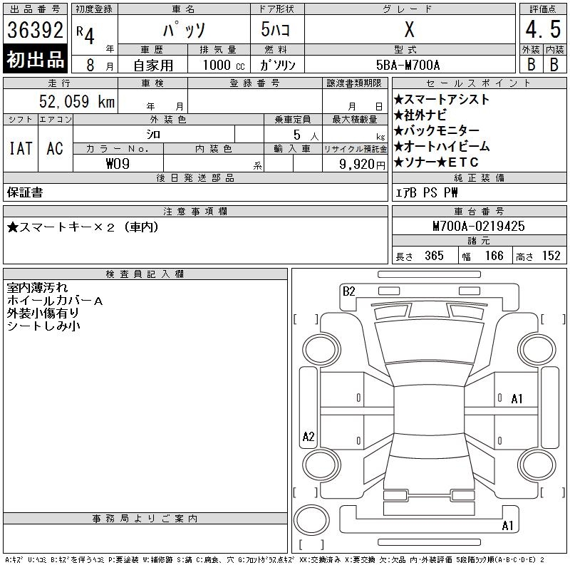 TOYOTA PASSO X - лот 36392