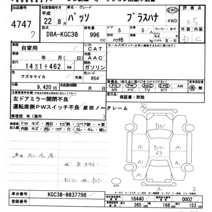 TOYOTA PASSO +Hana - лот 4747
