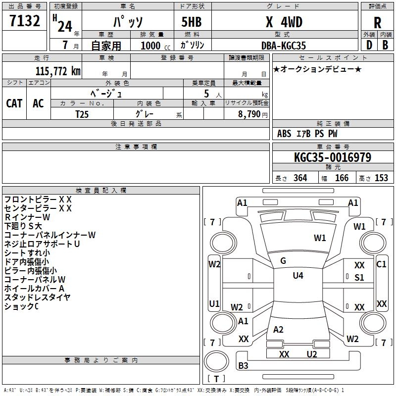 TOYOTA PASSO X 4WD - лот 7132
