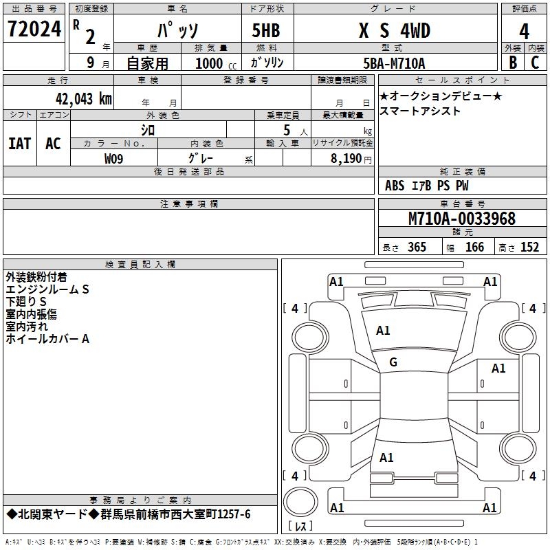 TOYOTA PASSO X S 4WD - лот 72024