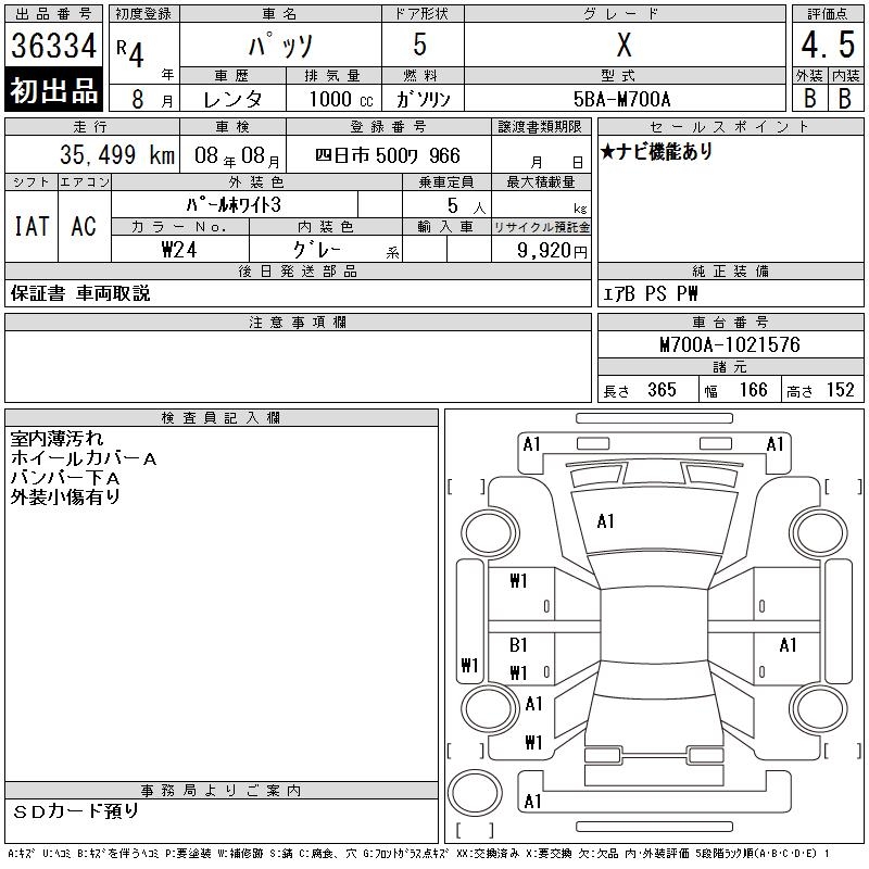 TOYOTA PASSO X - лот 36334