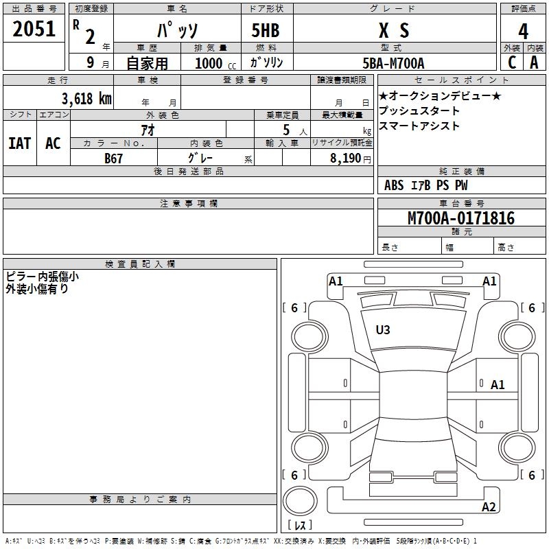 TOYOTA PASSO X S - лот 2051