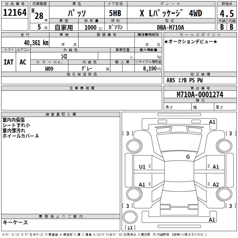 TOYOTA PASSO X L PACKAGE 4WD - лот 12164