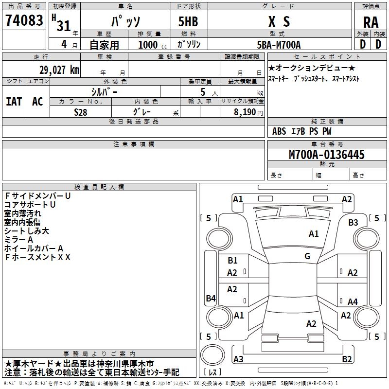 TOYOTA PASSO X S - лот 74083