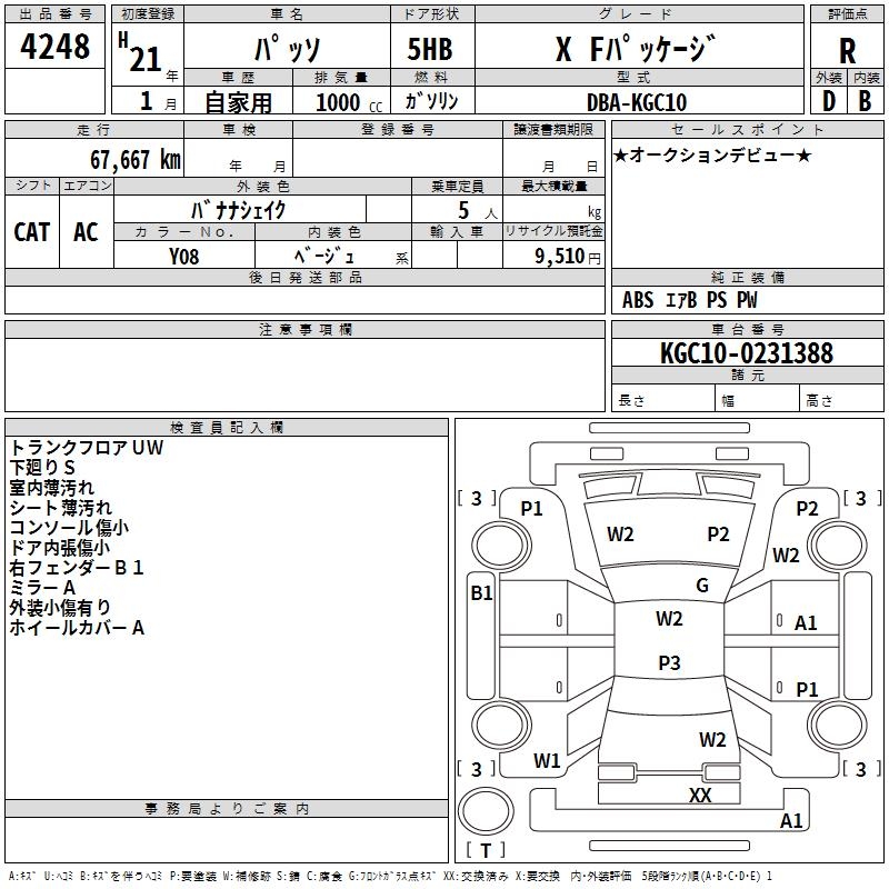 TOYOTA PASSO X F PACKAGE - лот 4248