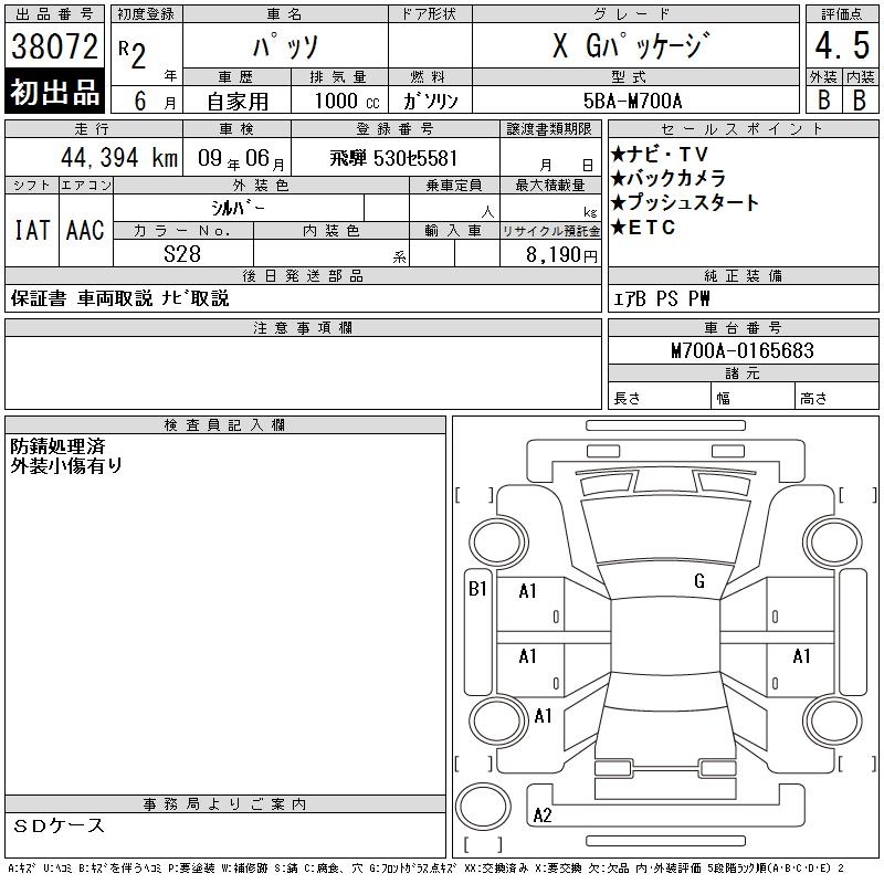 TOYOTA PASSO X G PACKAGE - лот 38072