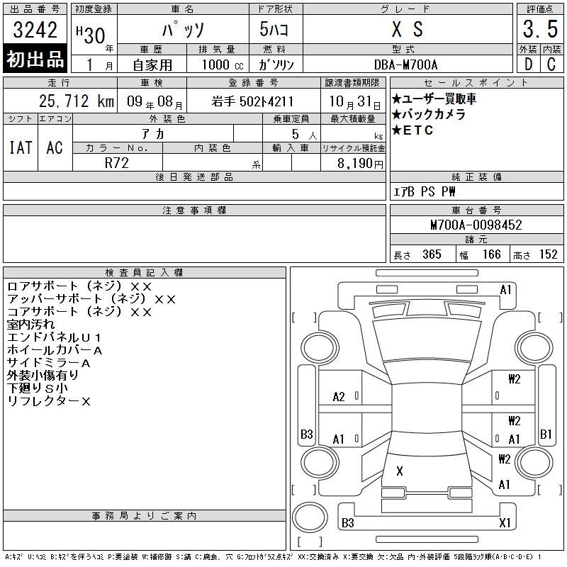 TOYOTA PASSO X S - лот 3242