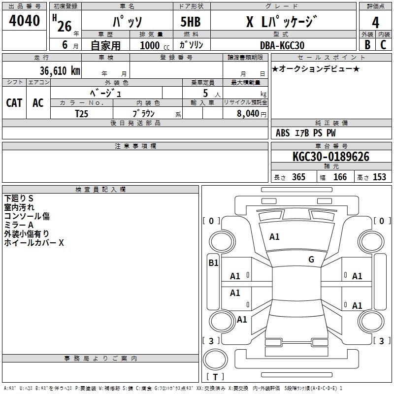 TOYOTA PASSO X L PACKAGE - лот 4040