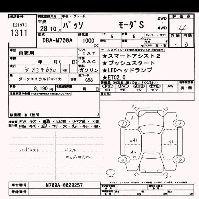 TOYOTA PASSO MO-DAS - лот 1311