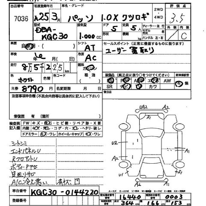 TOYOTA PASSO 1.0XKTSUROGI - лот 7036