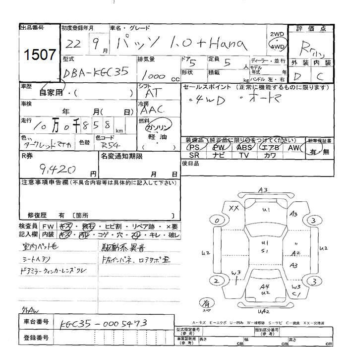 TOYOTA PASSO 4WD +Hana - лот 1507