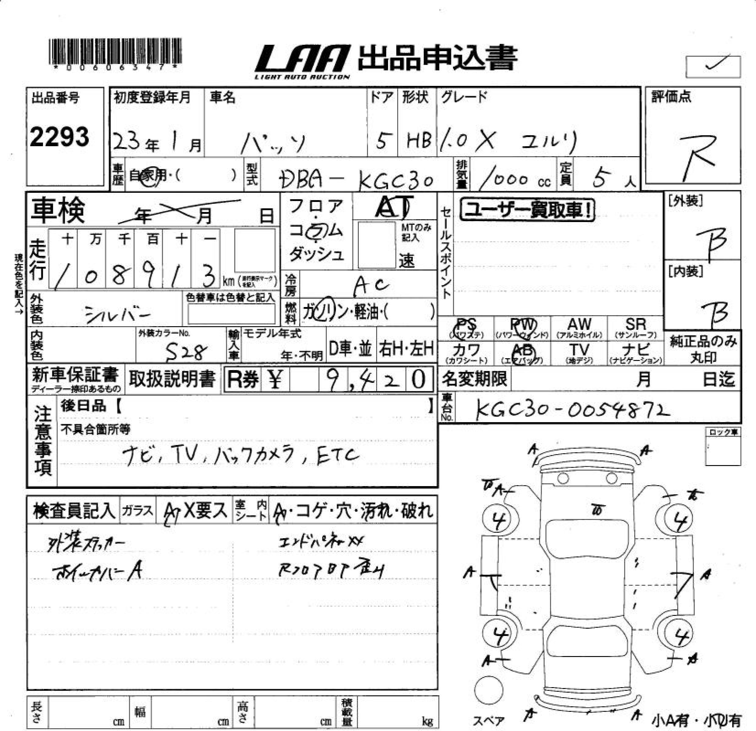 TOYOTA PASSO 1.0X YURURI - лот 2293