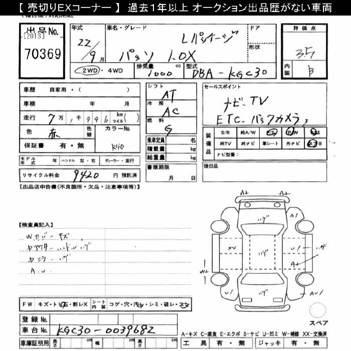 TOYOTA PASSO X L-PKG - лот 70369