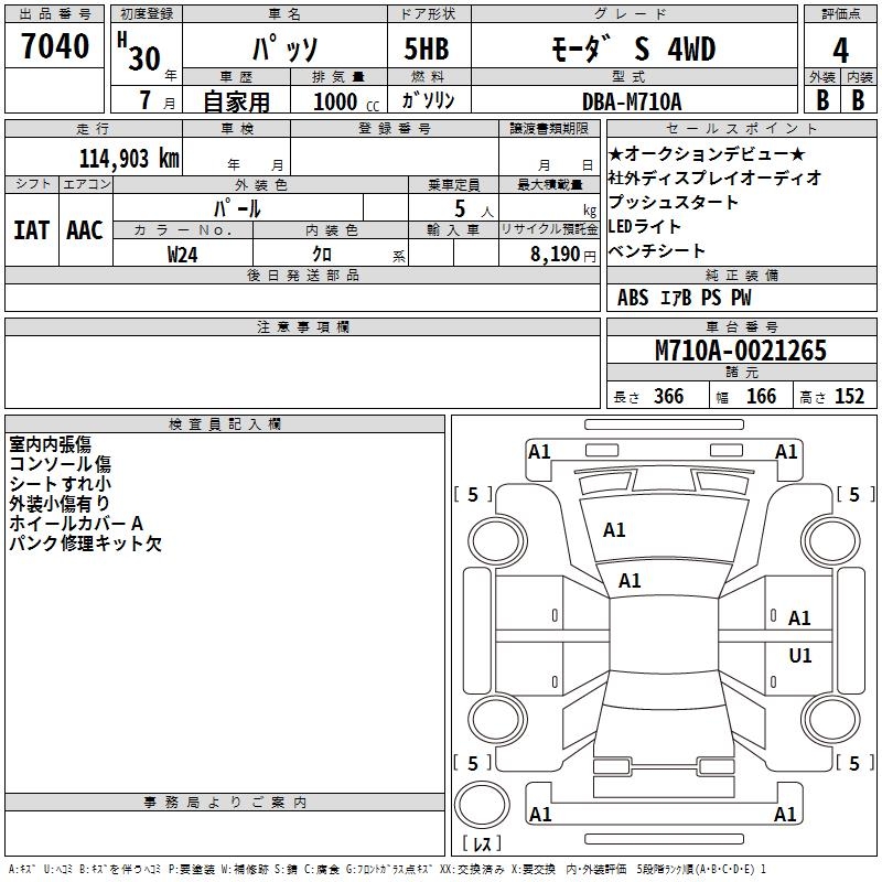 TOYOTA PASSO MO-DAS 4WD - лот 7040
