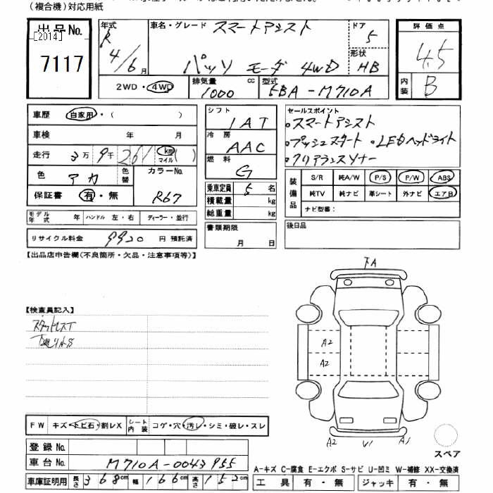 TOYOTA PASSO 4WDMO-DA SMART ASSIST - лот 7117