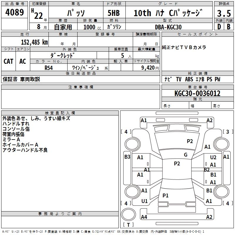 TOYOTA PASSO 10TH IS NAC PACKAGE - лот 4089