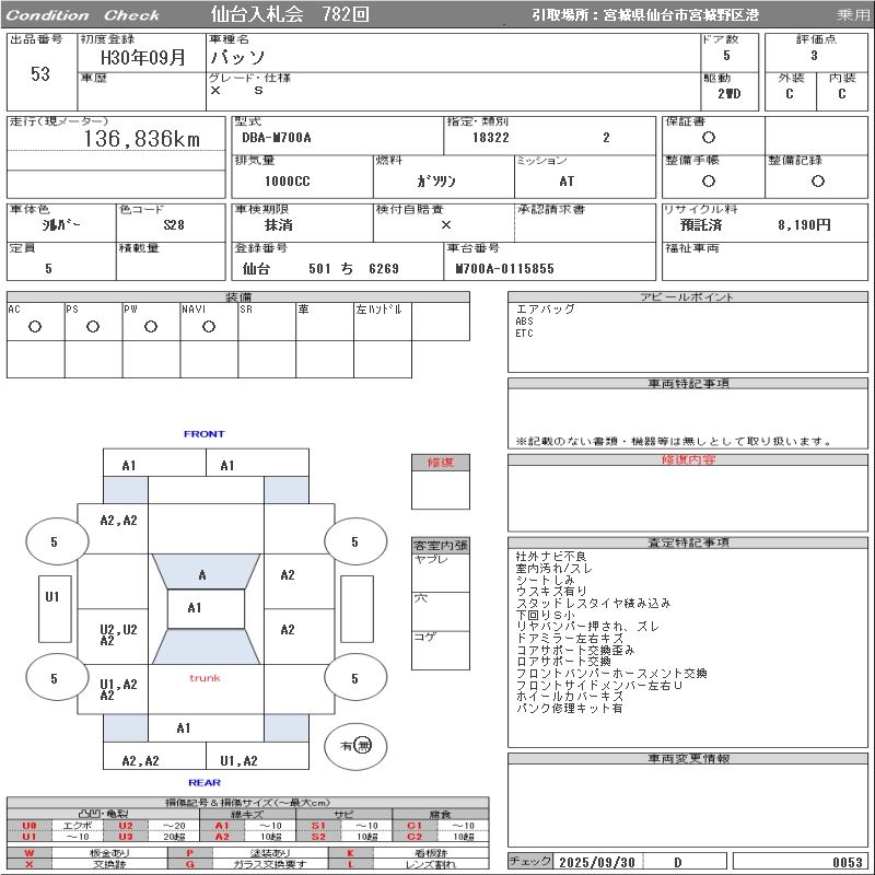 TOYOTA PASSO X S - лот 53