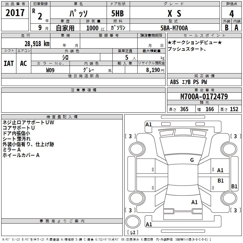 TOYOTA PASSO X S - лот 2017