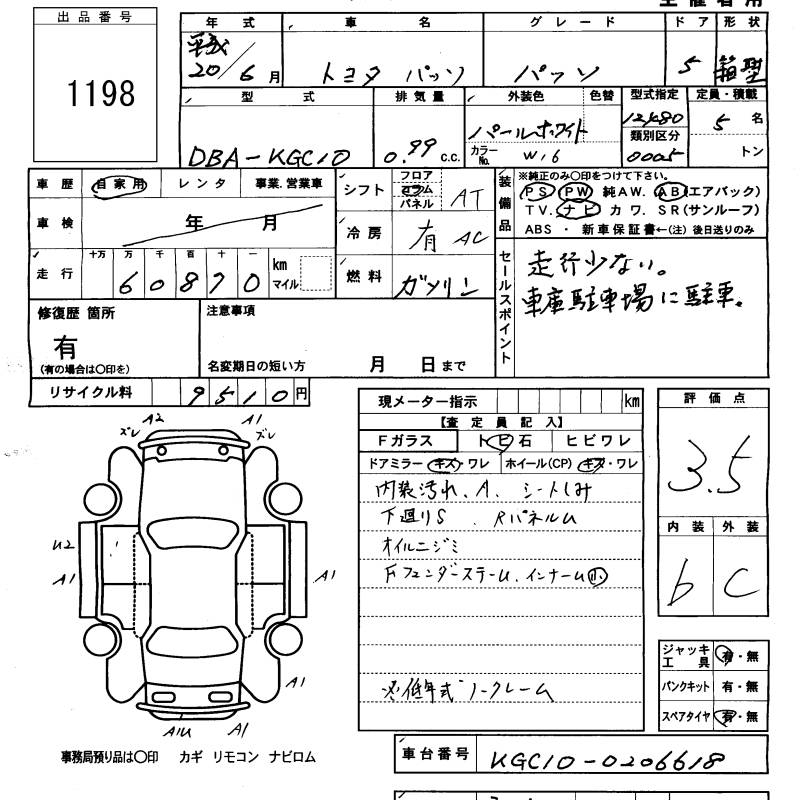 TOYOTA PASSO - лот 1198