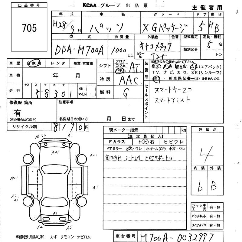 TOYOTA PASSO X G PACKAGE - лот 705