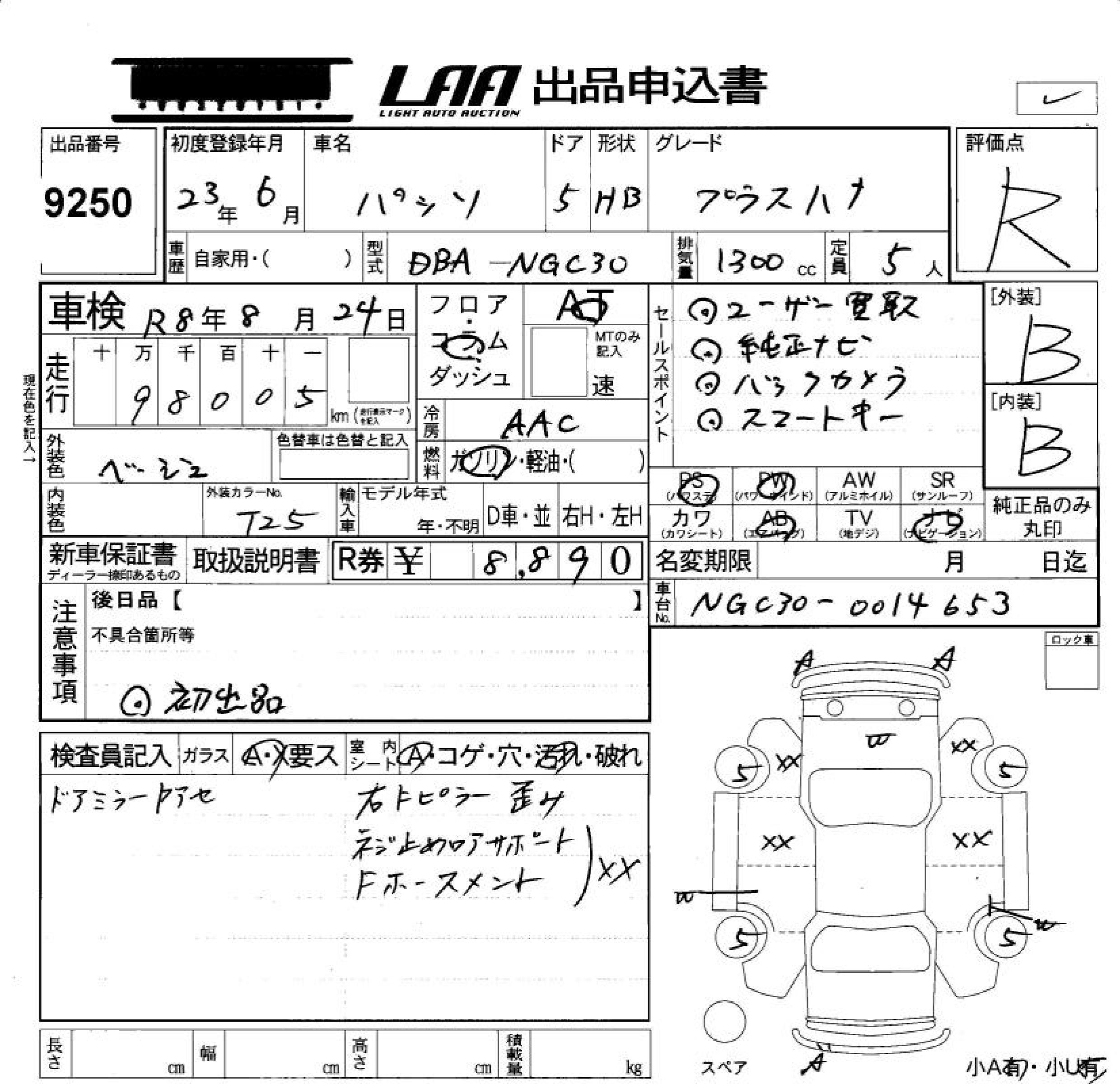 TOYOTA PASSO +HANA - лот 9250