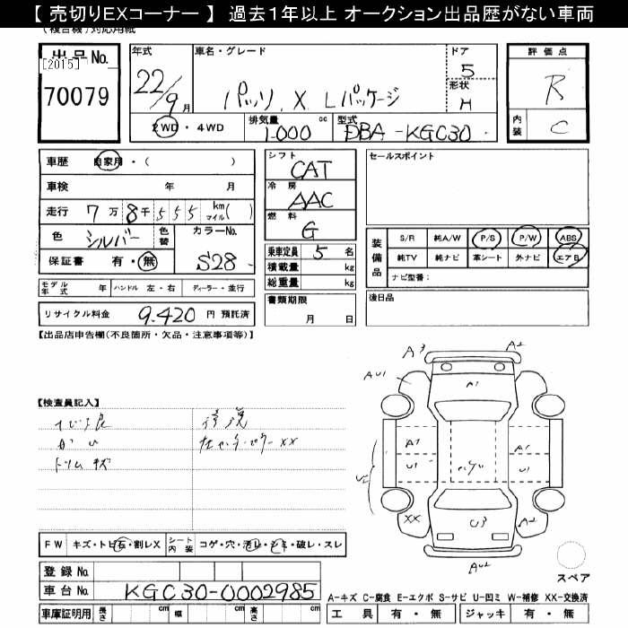 TOYOTA PASSO X L-PKG - лот 70079