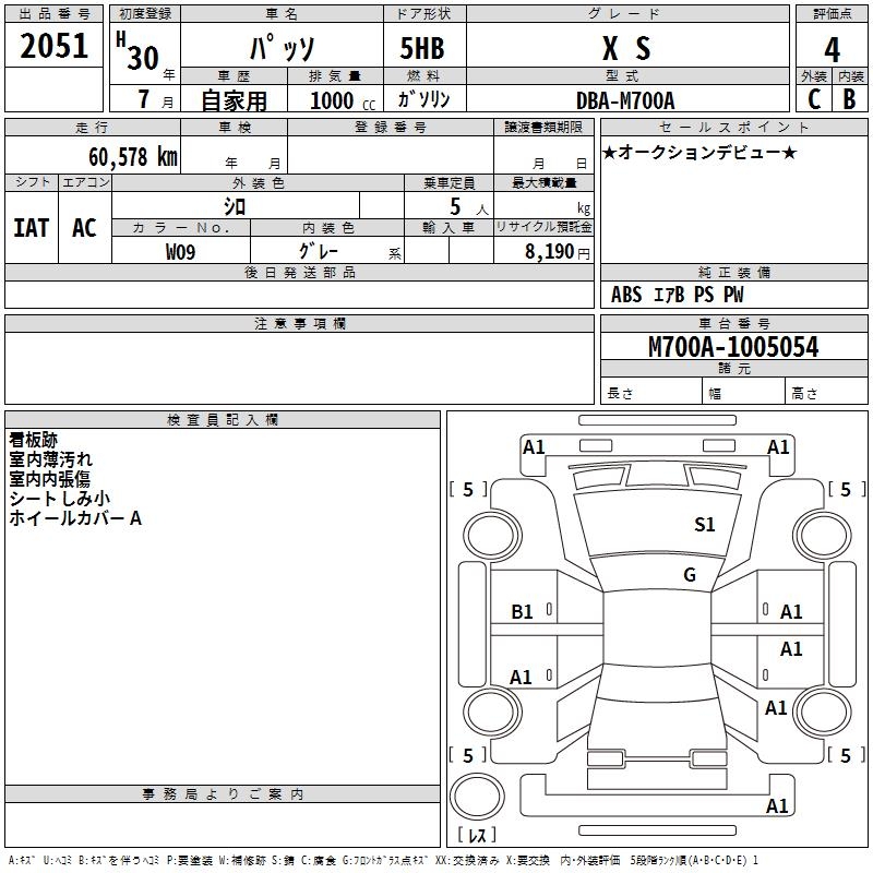 TOYOTA PASSO X S - лот 2051
