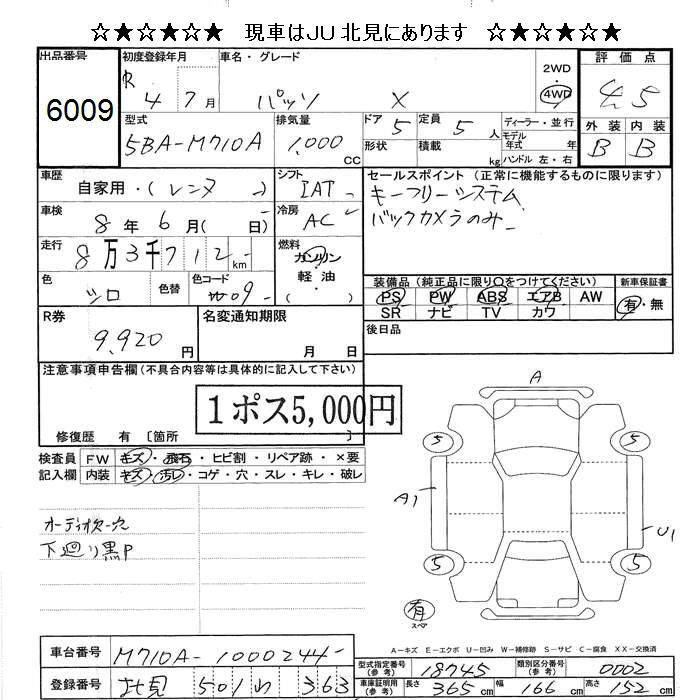 TOYOTA PASSO 4WD X - лот 6009