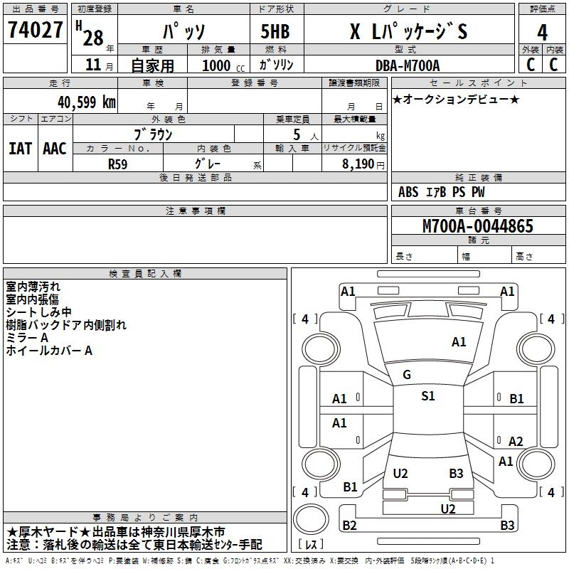 TOYOTA PASSO X L PACKAGE S - лот 74027