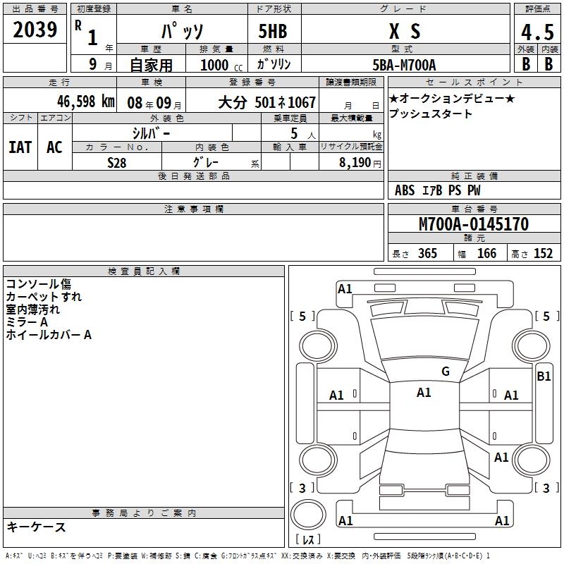 TOYOTA PASSO X S - лот 2039