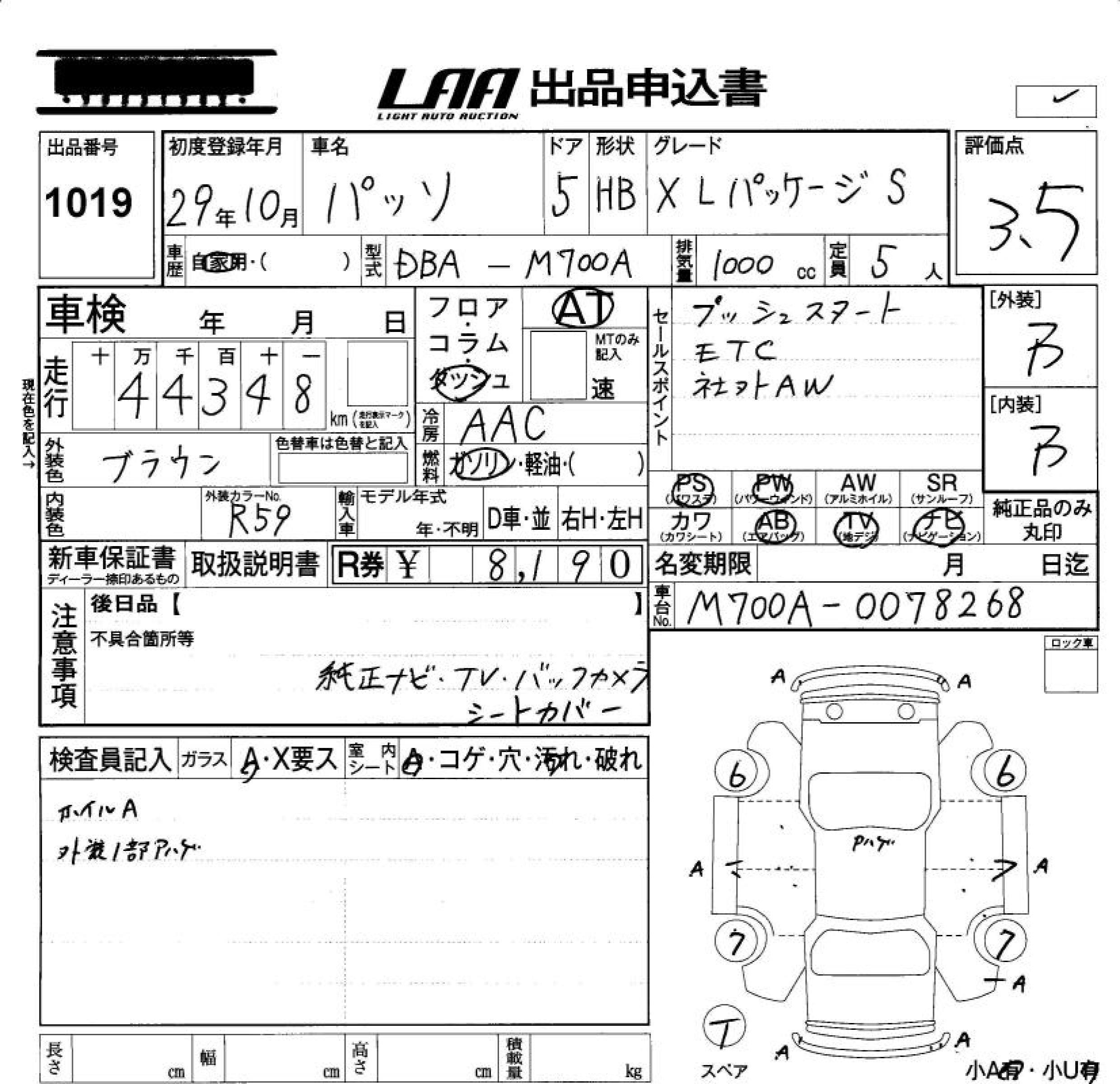 TOYOTA PASSO X L PACKAGE *S - лот 1019