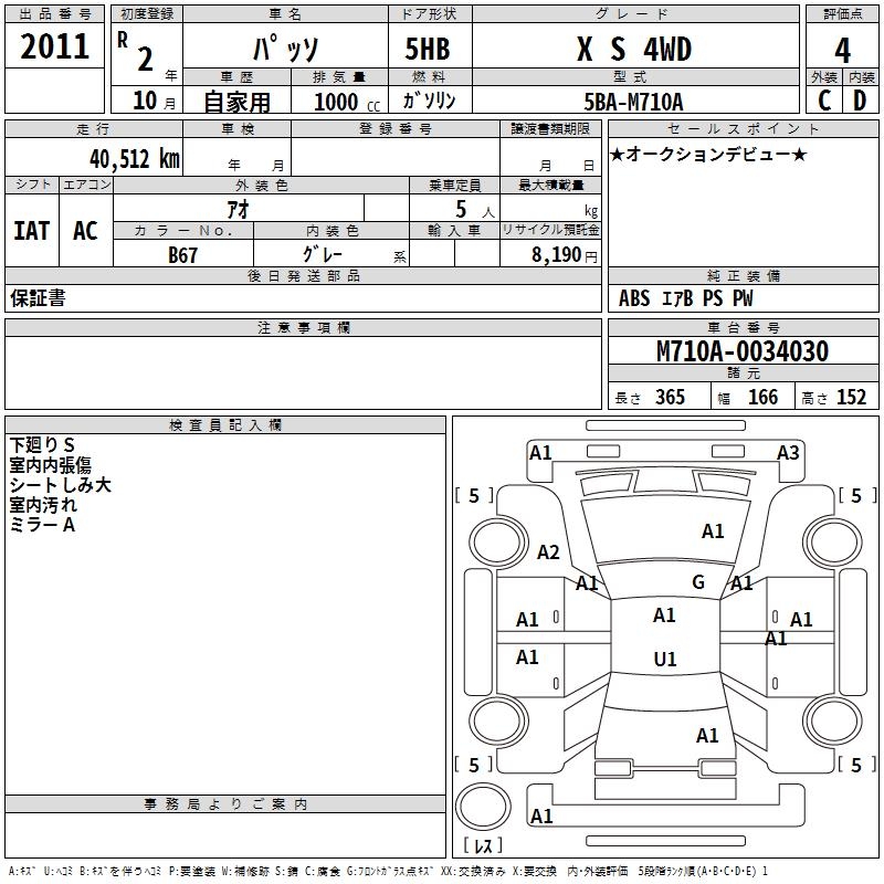 TOYOTA PASSO X S 4WD - лот 2011