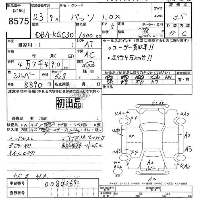 TOYOTA PASSO X - лот 8575