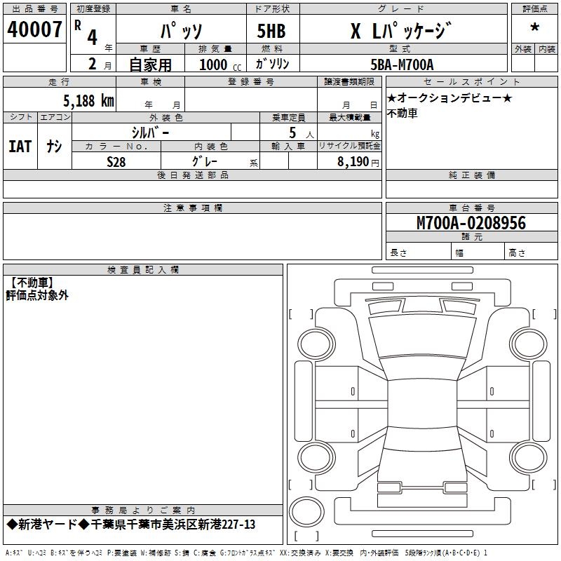 TOYOTA PASSO - лот 40007