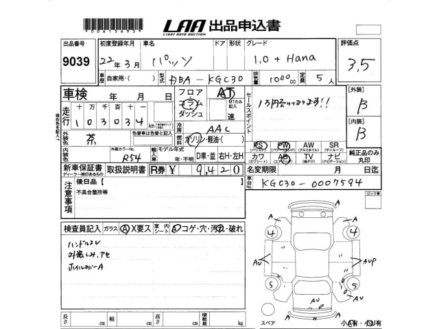 TOYOTA PASSO - лот 9039