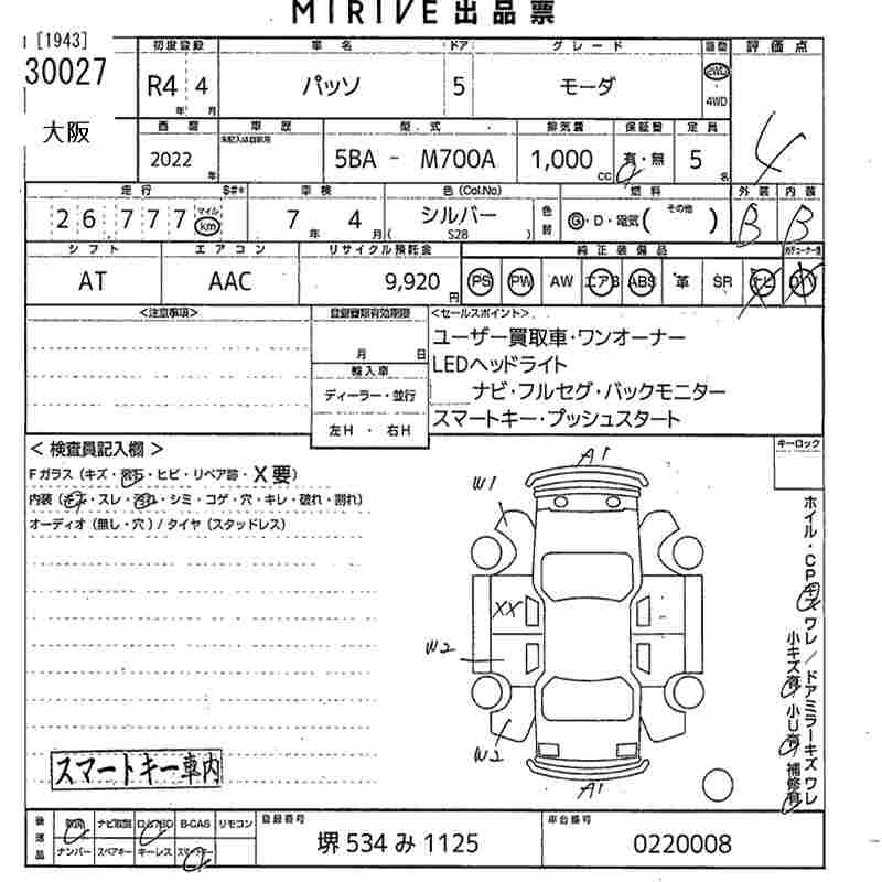 Все аукционы TOYOTA PASSO
