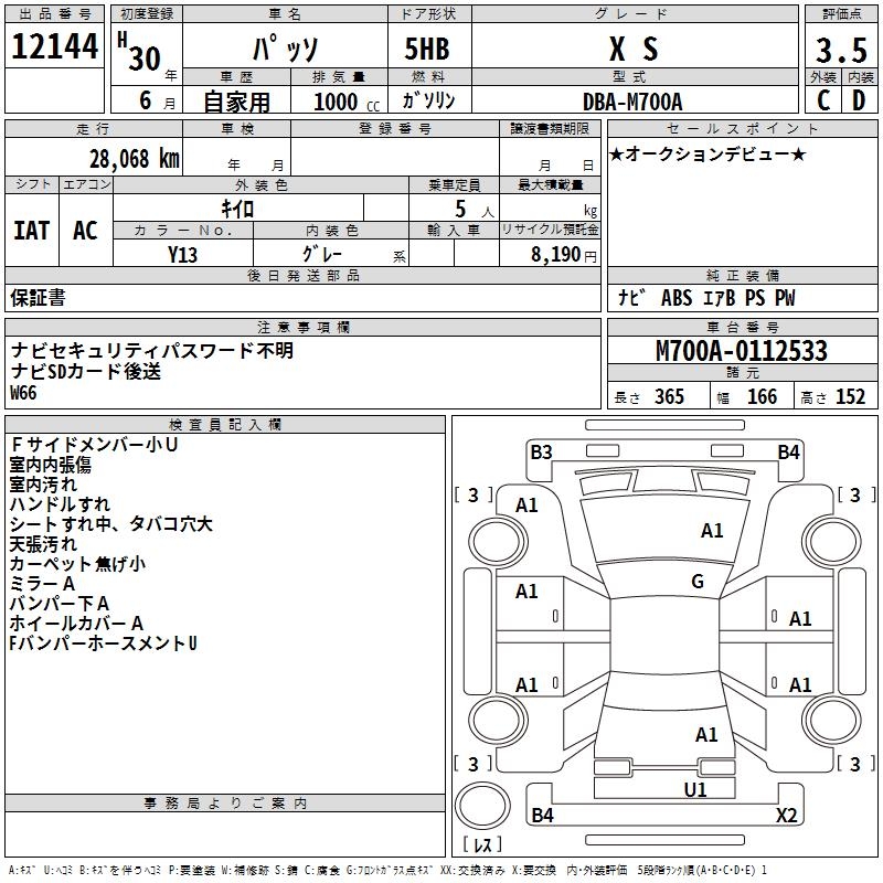 TOYOTA PASSO - лот 12144
