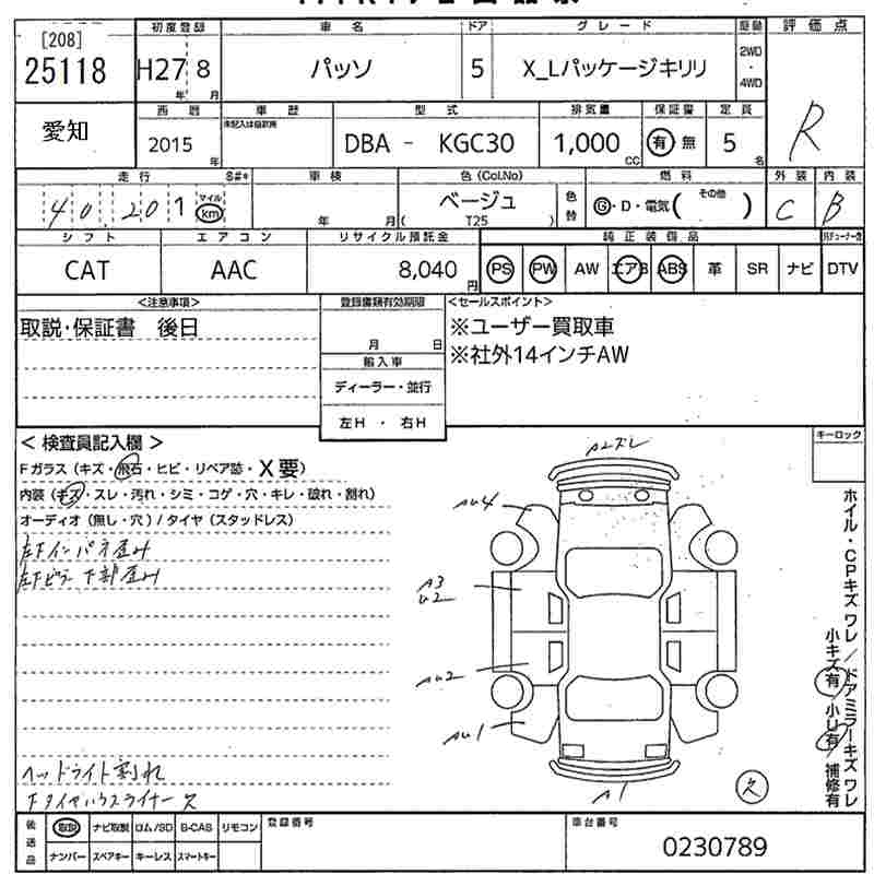 TOYOTA PASSO - лот 25118