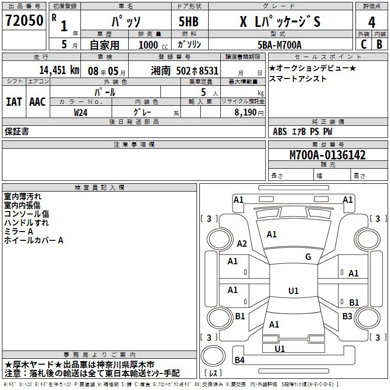 TOYOTA PASSO - лот 72050