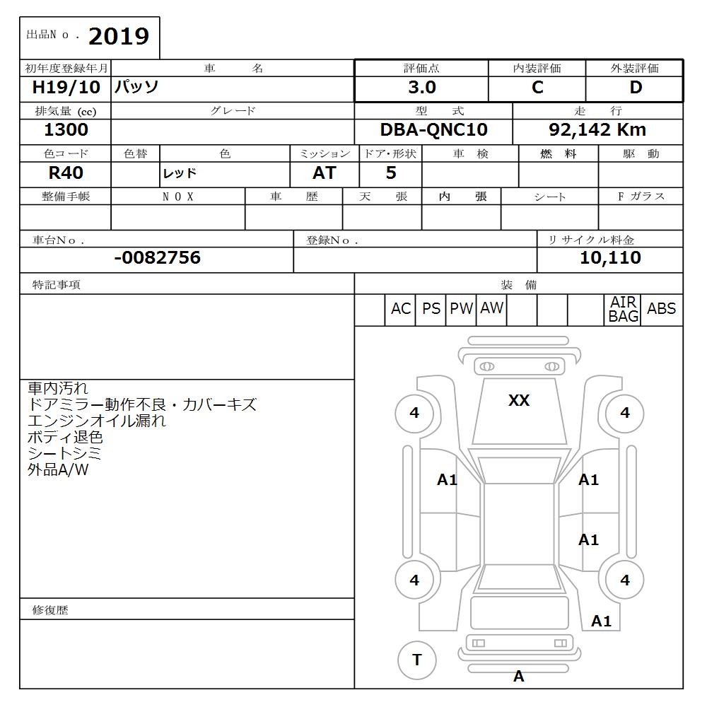 TOYOTA PASSO - лот 2019