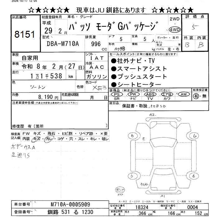 TOYOTA PASSO - лот 8151