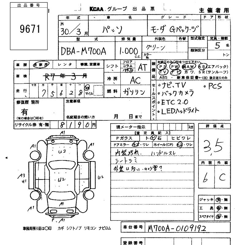 TOYOTA PASSO - лот 9671