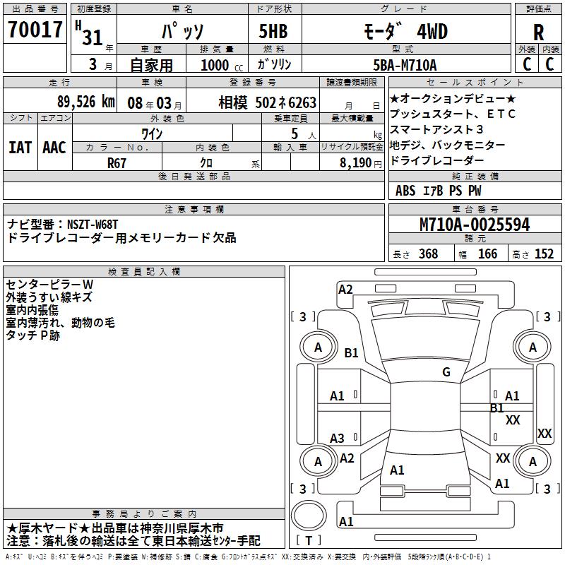 TOYOTA PASSO - лот 70017