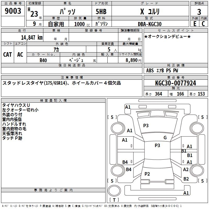 TOYOTA PASSO - лот 9003