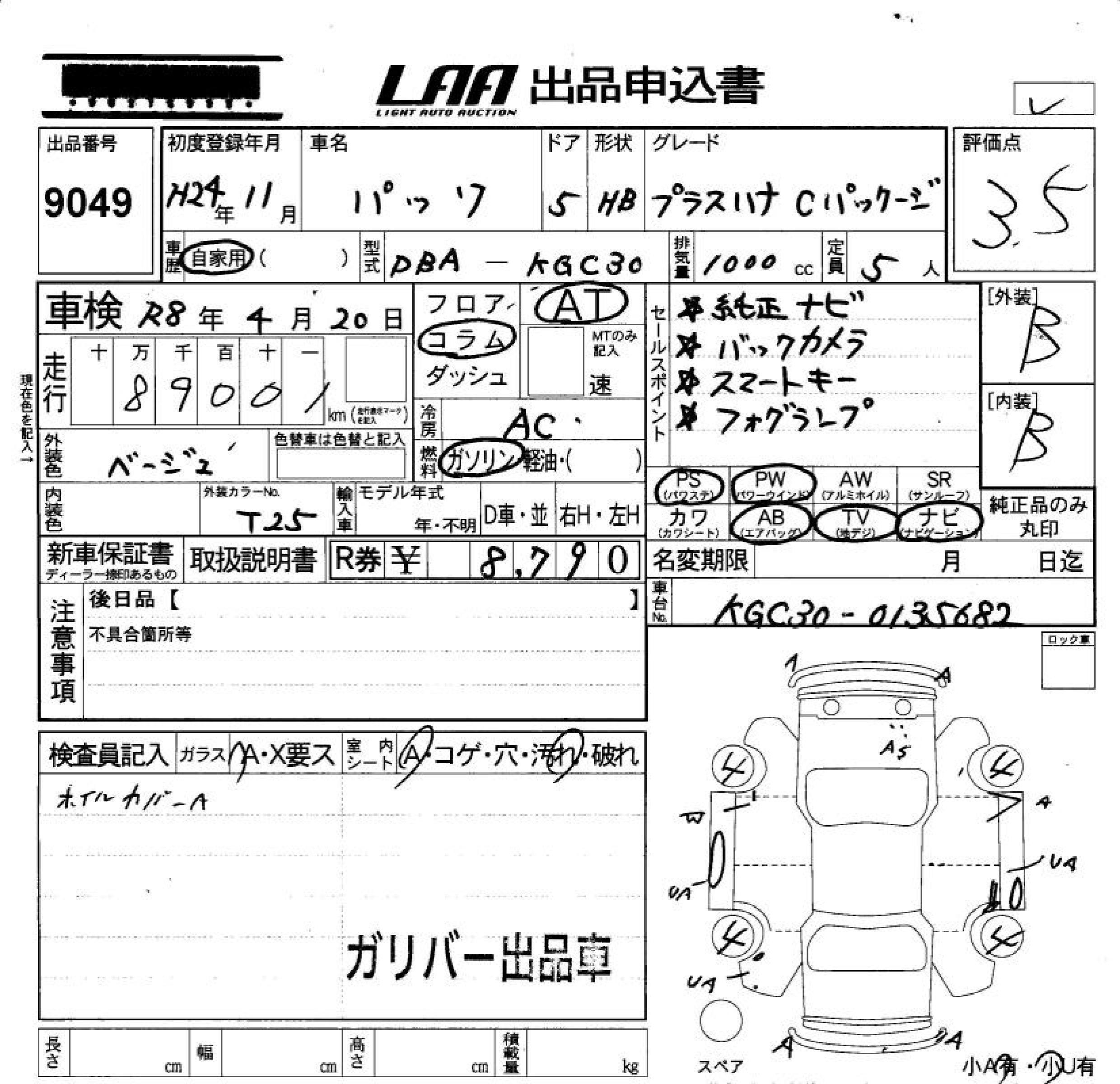 TOYOTA PASSO - лот 9049