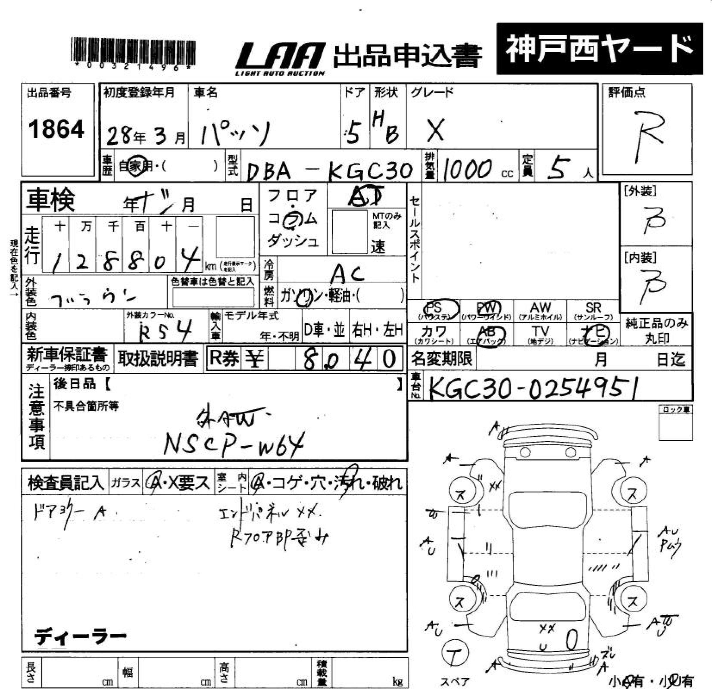 TOYOTA PASSO - лот 1864