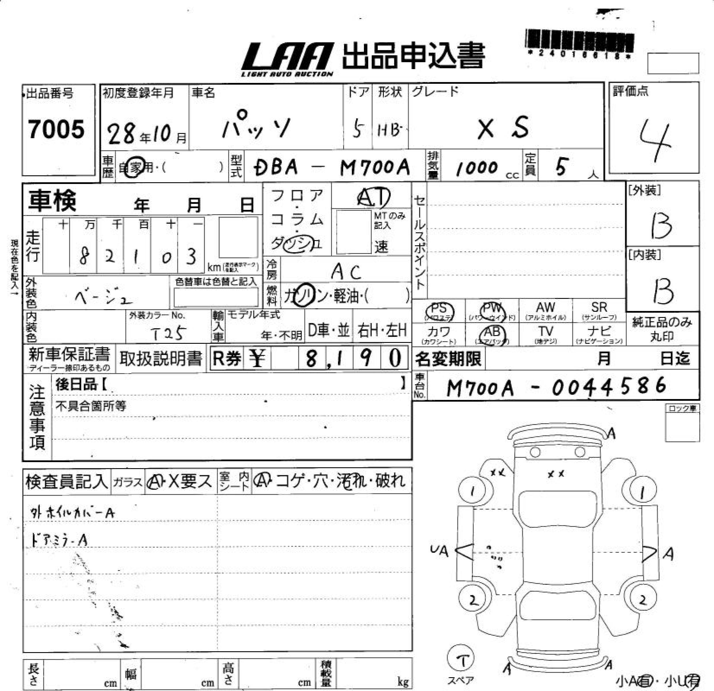 TOYOTA PASSO - лот 7005